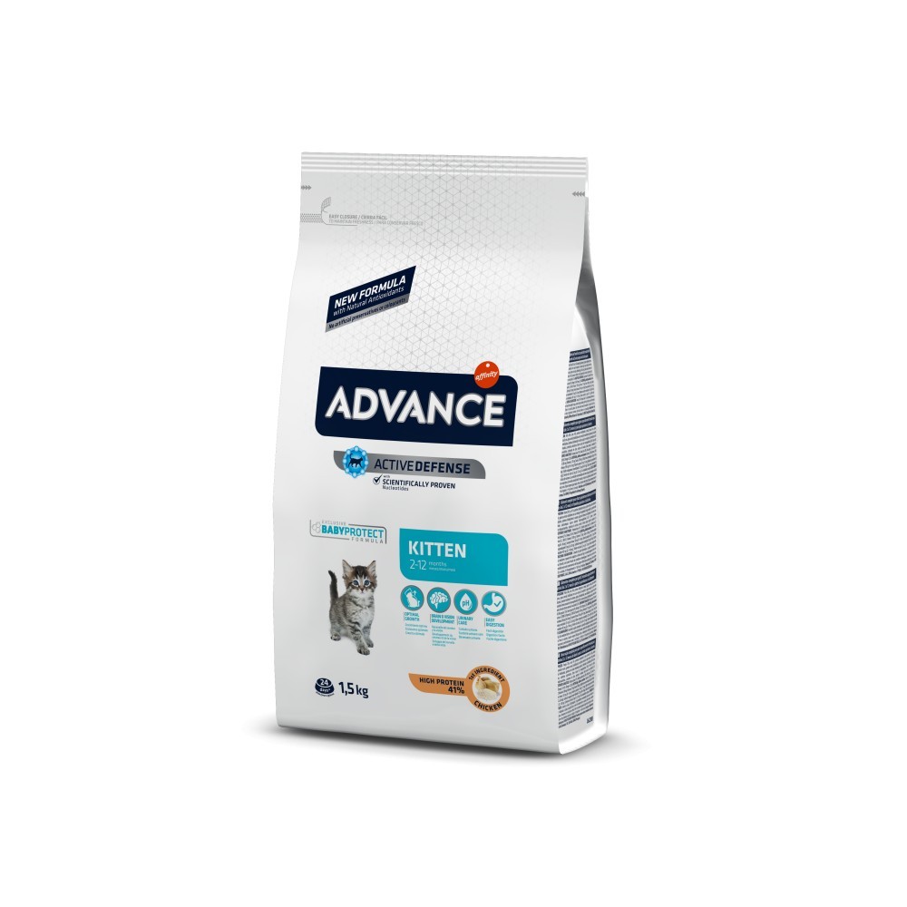 Si tu gatito tiene menos de 1 año, está en la etapa en la que experimenta más cambios físicos y de conducta, por lo que necesita un producto específico que le ayude a crecer fuerte y sano. ADVANCE Kitten es un alimento de alta gama, específicamente formulado para cubrir las necesidades de los gatitos y de las madres al final de la gestación y durante la lactancia. Gracias a su exclusiva formula suplementada con nucleótidos, ADVANCE Kitten favorece un crecimiento óptimo, ayudando al desarrollo del cerebro y la visión a la vez que refuerza las defensas naturales del gatito protegiendo su salud. ADVANCE Kitten está especialmente indicado para gatitos de 2 a 12 meses y para gatas gestantes y lactantes.