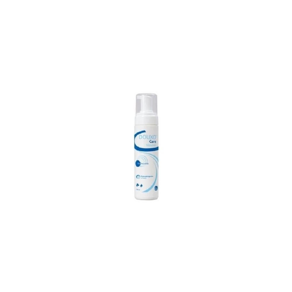 External use. Shake well before using. Brush hair thoroughly. Apply Douxo® Care Mousse on dry hair. Dispense one or two sprays on your hand and apply the foam on the animal. Gently massage against the grain so that the product reaches the skin. Repeat as many times as necessary to cover the entire body, avoiding the areas around the eyes and mouth. Do not clarify. Let it air dry. Once dry, you can brush it again to make the fur shiny.