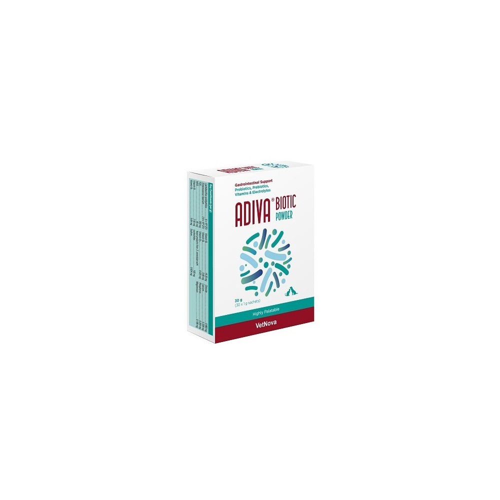 Adiva Biotic es un Alimento Complementario Dietético de Alta Palatabilidad con Probióticos, Prebióticos (FOS y MOS), Electrolitos y Vitaminas del Grupo B, Desarrollado como Apoyo al Normal Funcionamiento Intestinal en Perros y Gatos.
