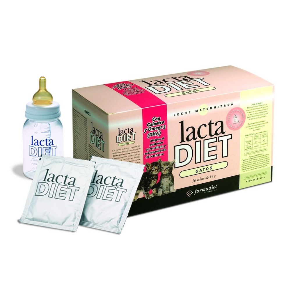 Case of 300 g with 20 sachets of 15g each (including bottle and 2 nipples right size for the kitten).