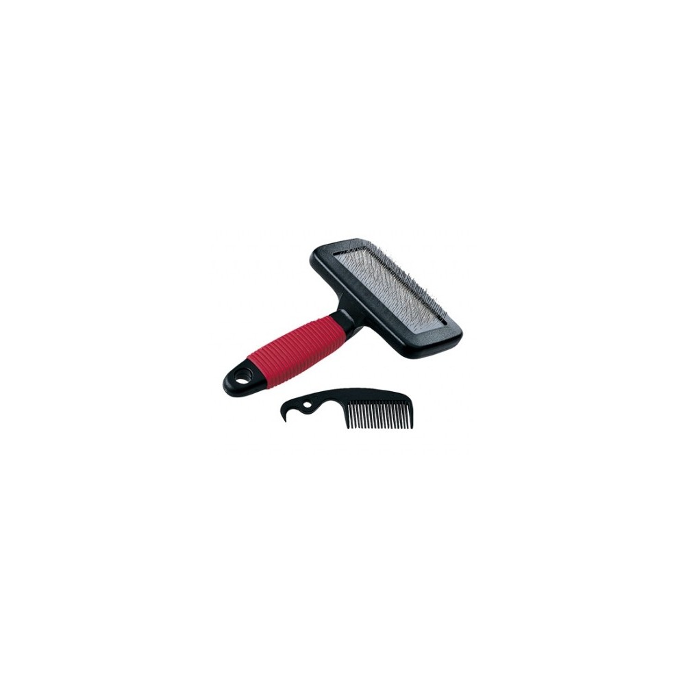 Cepillo para gatos y perros de pelo largo e intermedio, equipado con púas inclinadas de acero inoxidable, que eliminan el pelo muerto, haciendo que la cepillada final sea mucho más fácil. También encontrarás un útil peine para quitar el pelo muerto de las púas del cepillo.