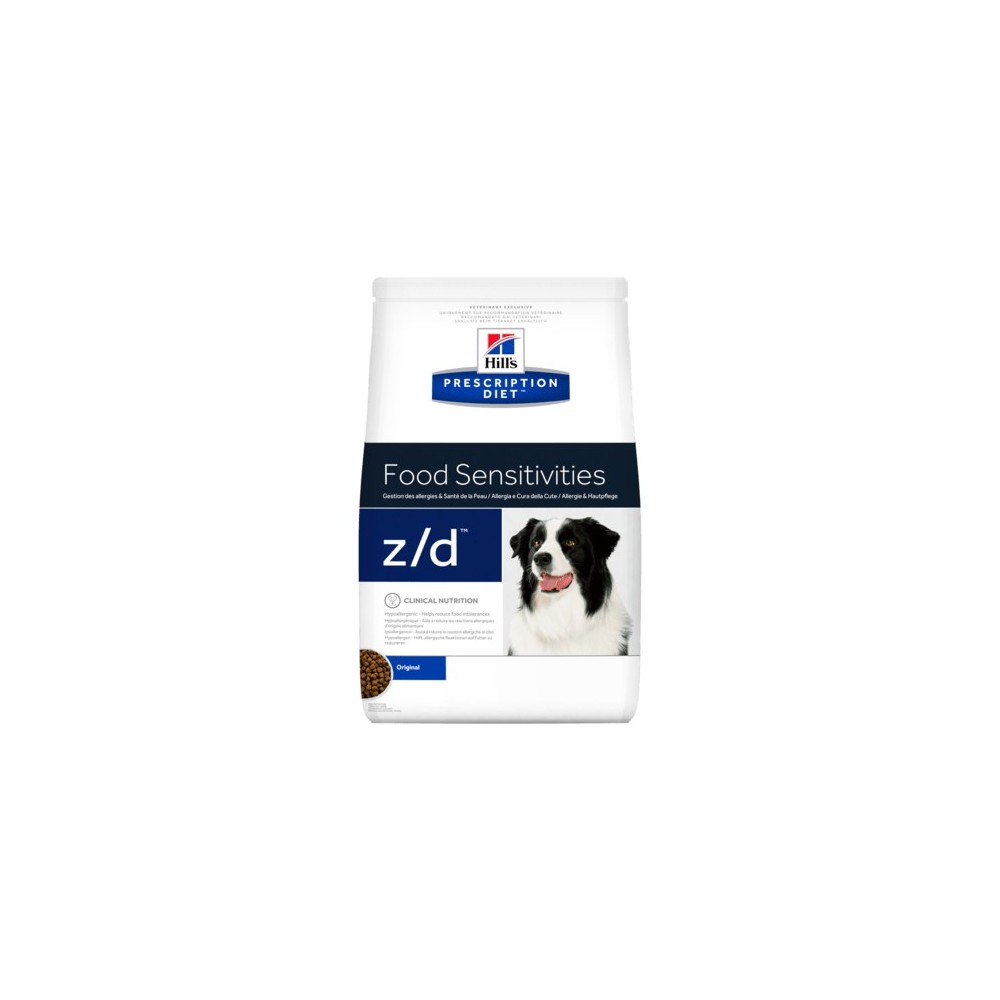 Prescription Diet™ Canine z/d™ ha probado clínicamente que ayuda a reducir los signos cutáneos y digestivos producidos por las alergias alimentarias.