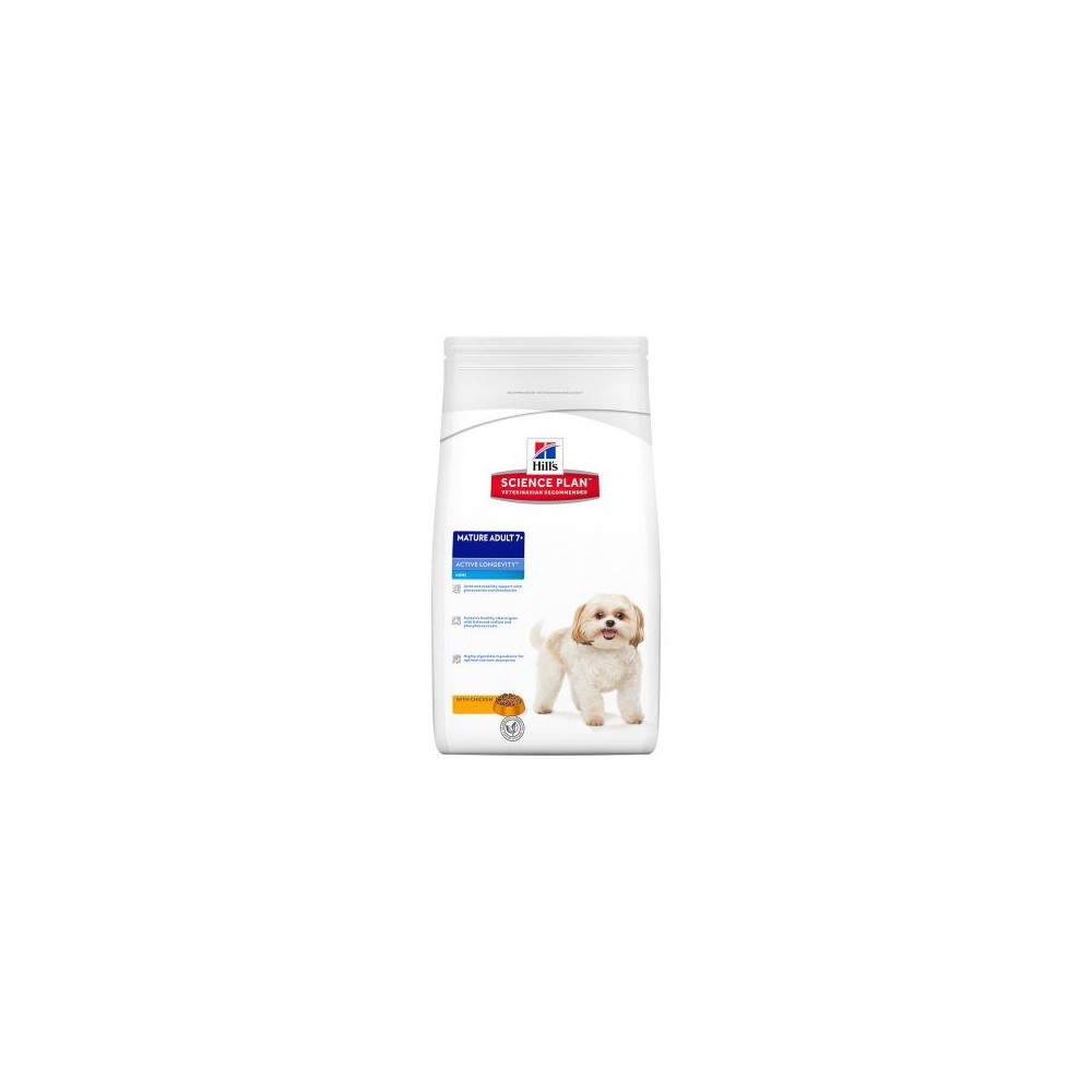 Hill's™ Science Plan™ Canine Mature Adult 7+ Longevidad Activa Mini con Pollo está formulado para mantener la movilidad y los órganos vitales sanos, para perros que prefieren croquetas más pequeñas. Contiene antioxidantes, y glucosamina y condroitín obtenidos a partir de fuentes naturales.