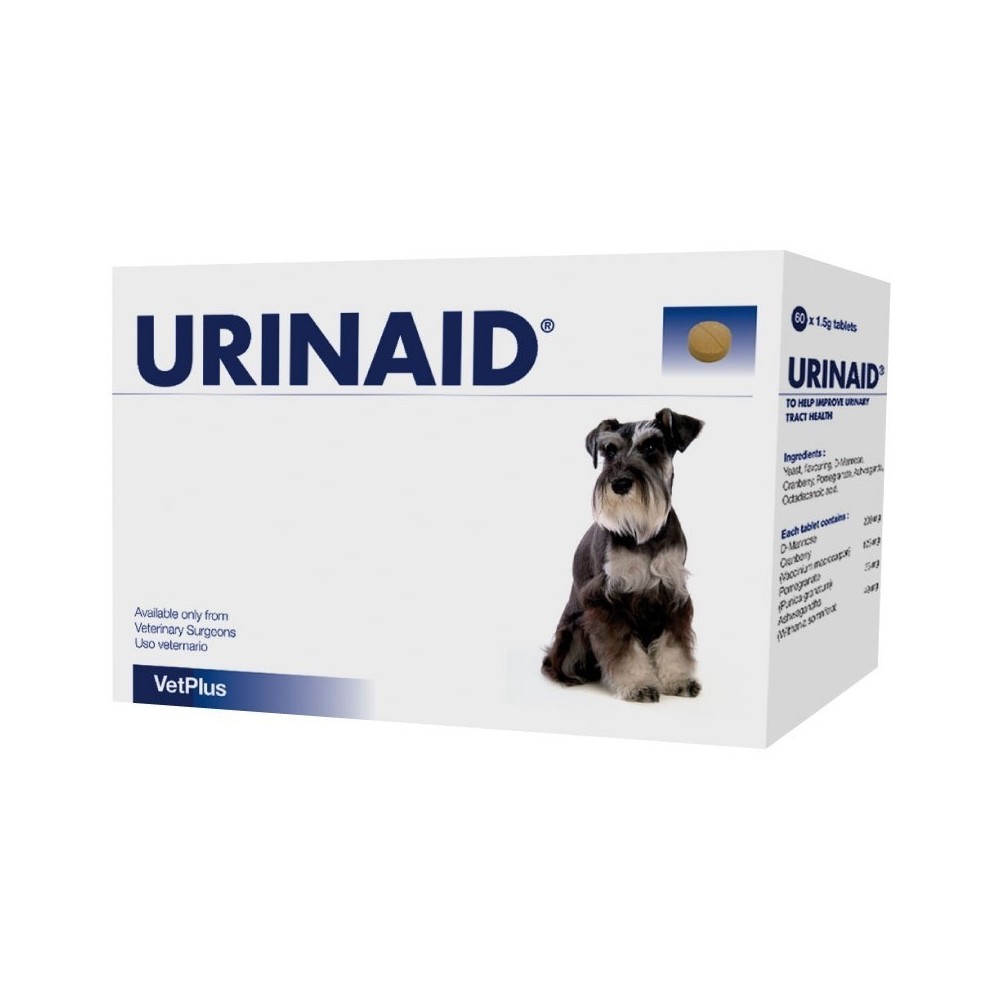 Urinaid está exclusivamente formulado para ayudar a promover la buena salud de la vejiga de su perro. Contiene una combinación única de ingredientes naturales para ayudar al cuerpo frente a una mala función de la vejiga.