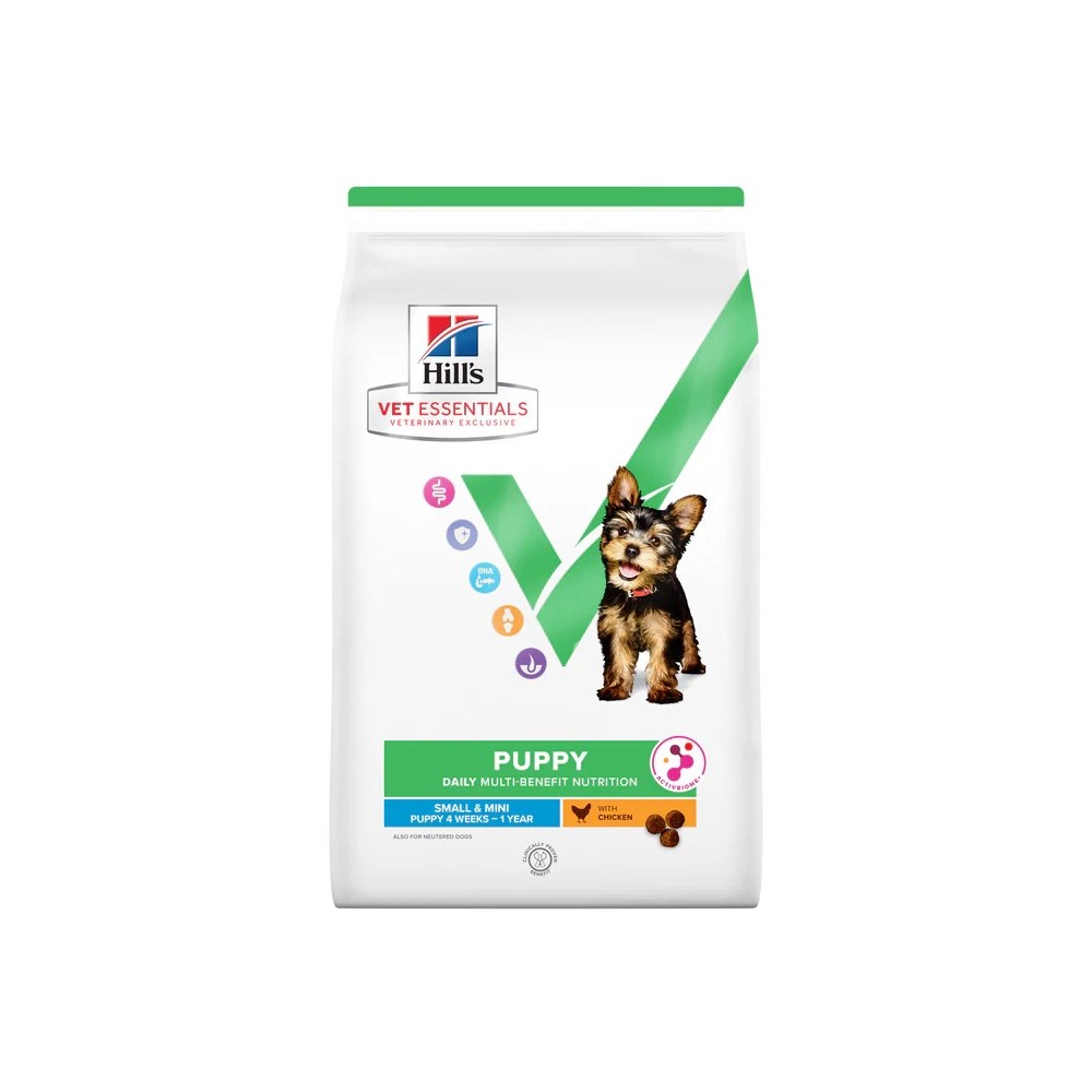 Hill's VetEssentials Canine Puppy é um alimento completo e equilibrado para a nutrição diária de cachorros das 5 às 6 semanas de idade até aos 12 meses. Pode também ser utilizado para fêmeas gestantes e/ou lactantes de qualquer porte.